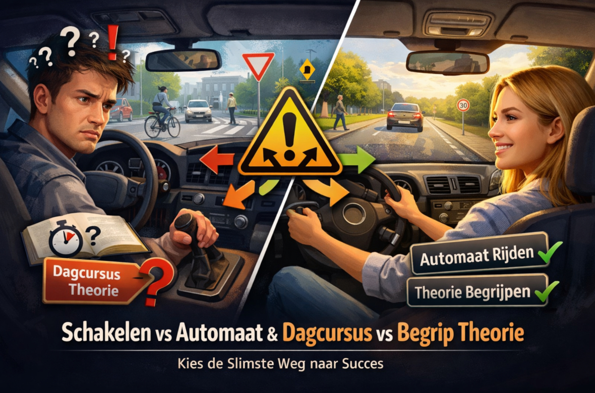 Veel leerlingen willen vanaf het begin per se in een schakelauto rijden. Begrijpelijk, want dat voelt voor velen als de “volledige” route. Maar in de praktijk betekent het vaak dat alles tegelijk moet gebeuren.